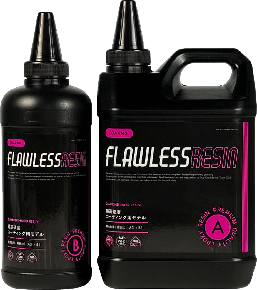 最大の特徴である黄変のしにくさには、今もなお一切の妥協なく追求し続けています。自社で徹底的に研究と試験を重ね、ガラパゴス的に進化した唯一無二の特性を持つエポキシ樹脂。黄変させたくない作品の最適解として多くの方に選ばれ続けています。